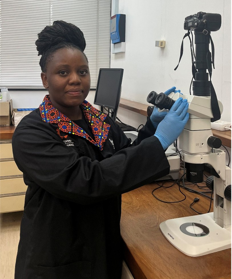 Ms. Patience Mamathaba, PhD student in Environmental Management, working on mathematical modelling of population dynamics of Securidaca longepedunculata, supervised by Prof. Yessoufou (ACDB, UJ) and Prof. Orou Gaoue, University of Tennessee, USA.